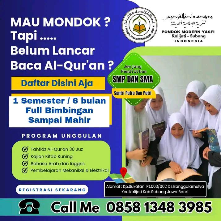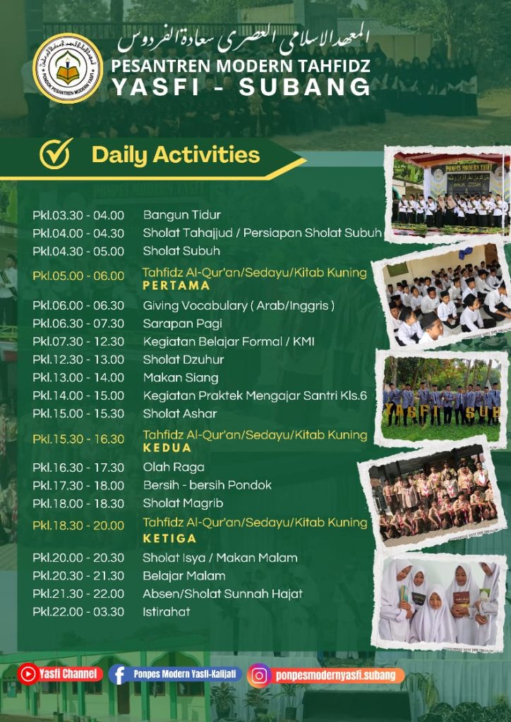 Pondok Pesantren Modern Yasfi Subang merupakan lembaga pendidikan yang memberikan solusi dengan pola pendidikan islami yang menintegrasikan pendidikan yang memiliki 3 unsur dalam pendidikan dan pengajaran yang diterapkan.